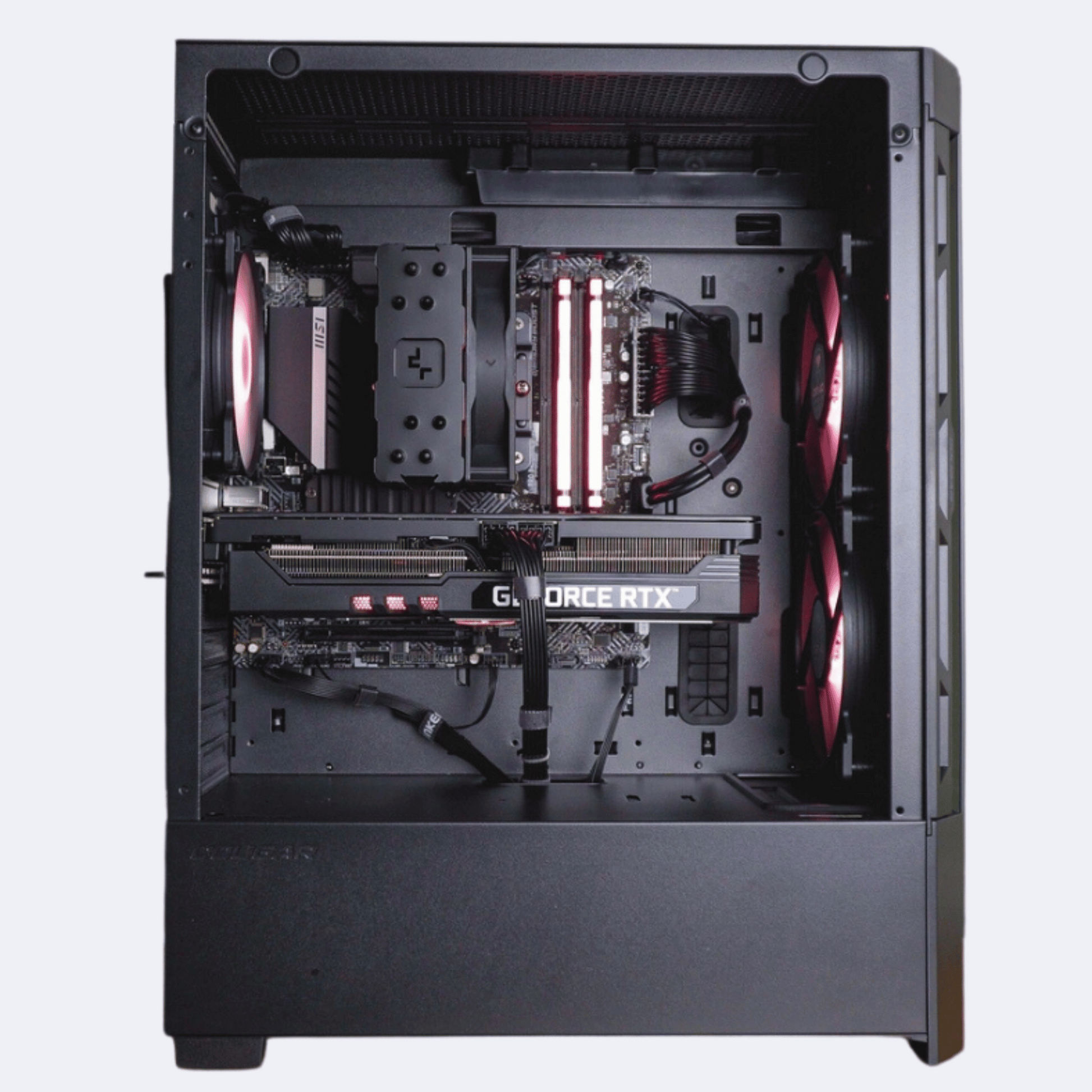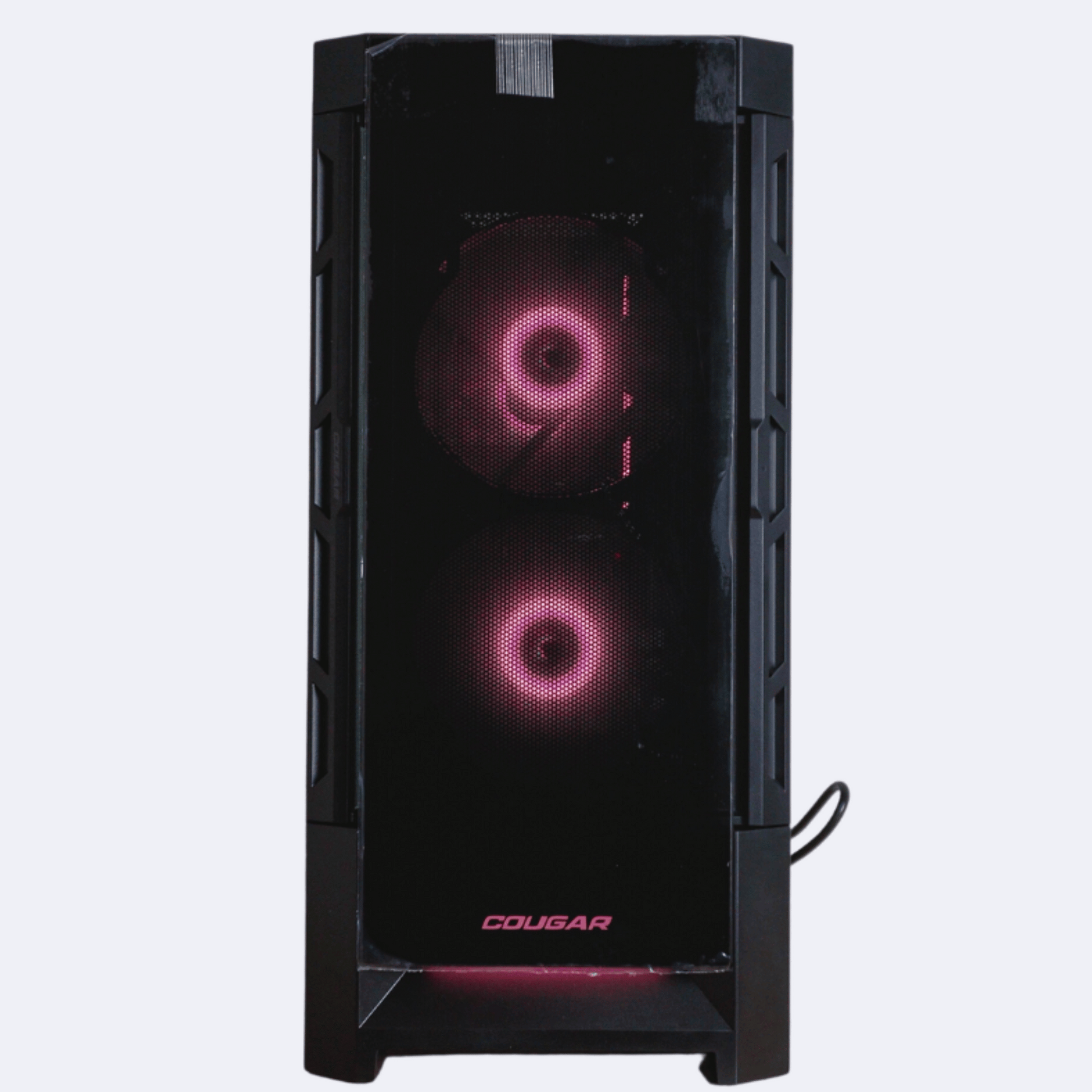 All components fit within the spacious Cougar case, which is equipped with pre-installed RGB fans for style.