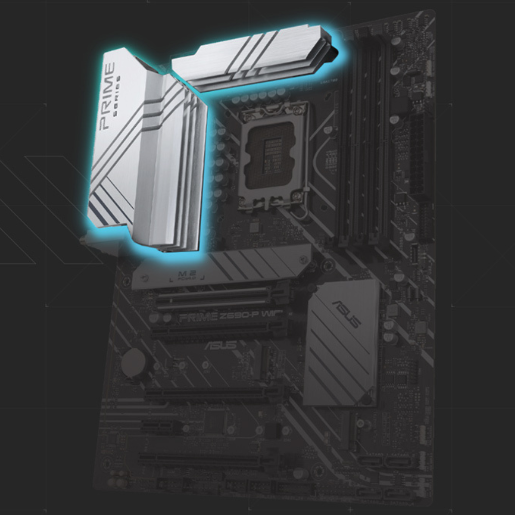Prime Z690 series is engineered with multiple onboard heatsinks and an array of hybrid fan headers to ensure your rig stays cool and stable under intense workloads.