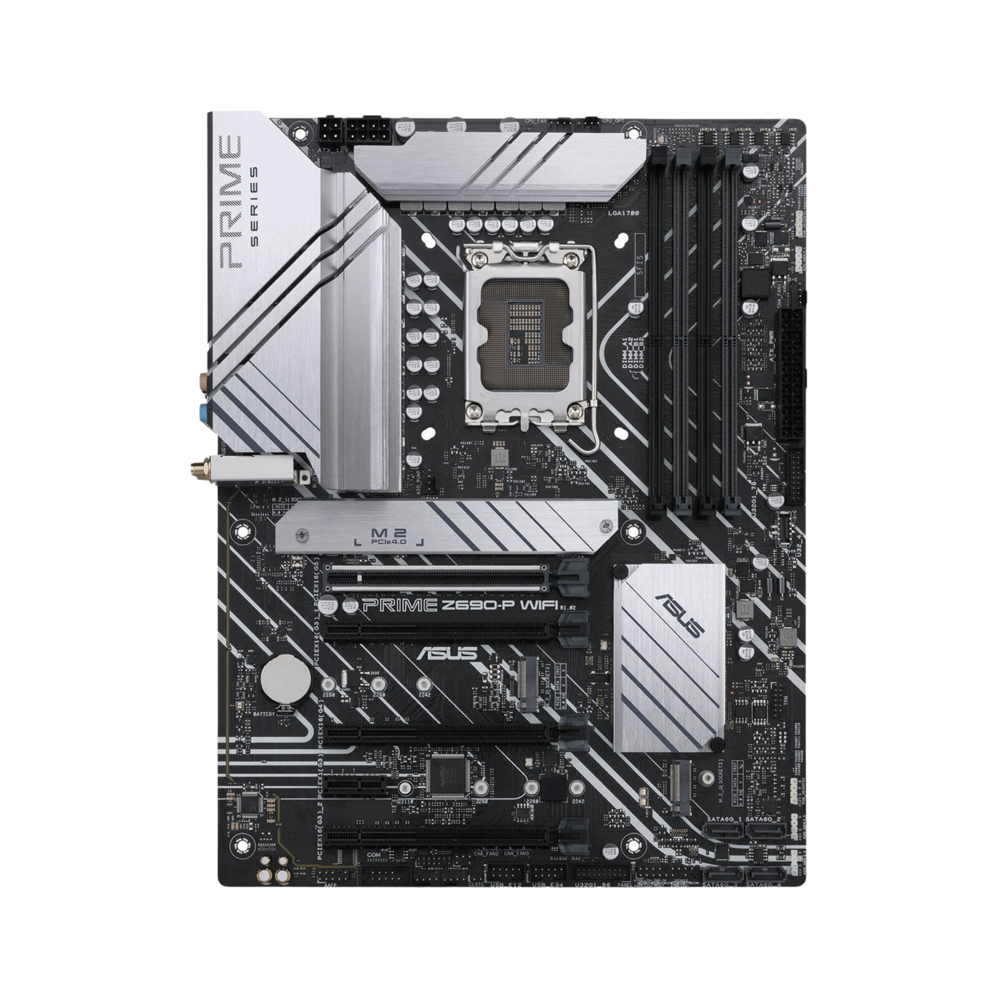 Boasting a robust power design, comprehensive cooling solutions and intelligent tuning options, PRIME Z690-P WIFI provides users and PC DIY builders a range of performance tuning options via intuitive software and firmware features.ASUS PRIME Z690-P WIFI offers a sleek, futuristic-looking build with a black and white finish, space-shuttle-inspired design elements, metallic nameplate and PCB cover.