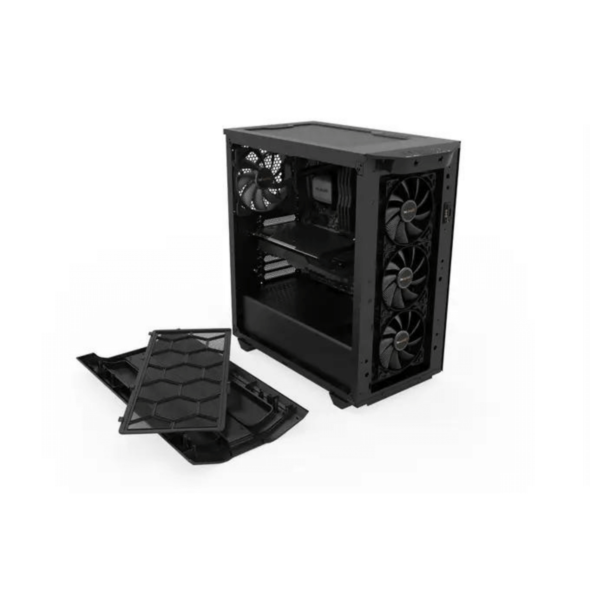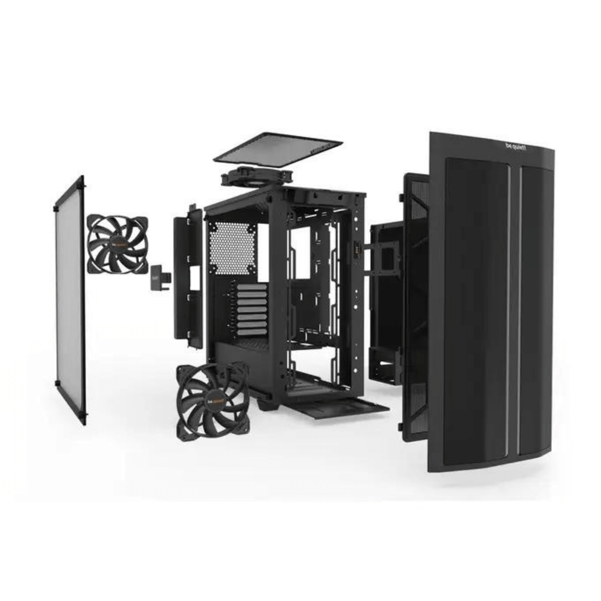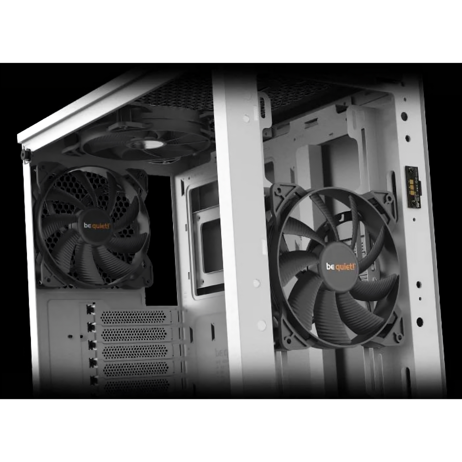 3 preinstalled Pure Wings 2 fans with airflow-optimized fan blades that ensure perfect airflow and cooling. Despite the compact case design the fans at the front, top and rear are 140mm models, resulting in very quiet operation. Up to two 140mm fans can be installed in addition.