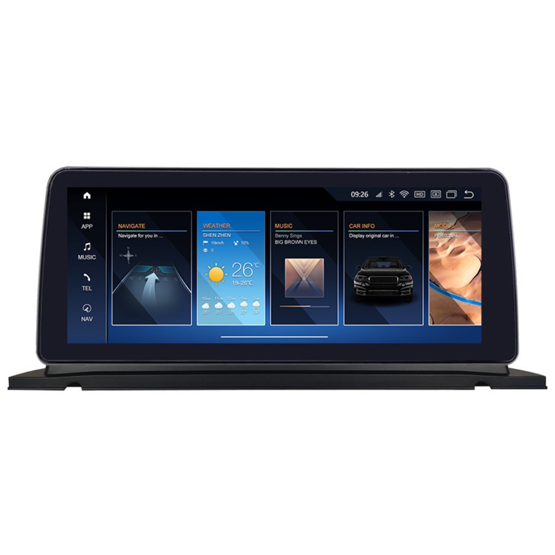 Android touchscreen upgrades BMW models with fast response anti-glare graphics and keeps factory comfort controls.