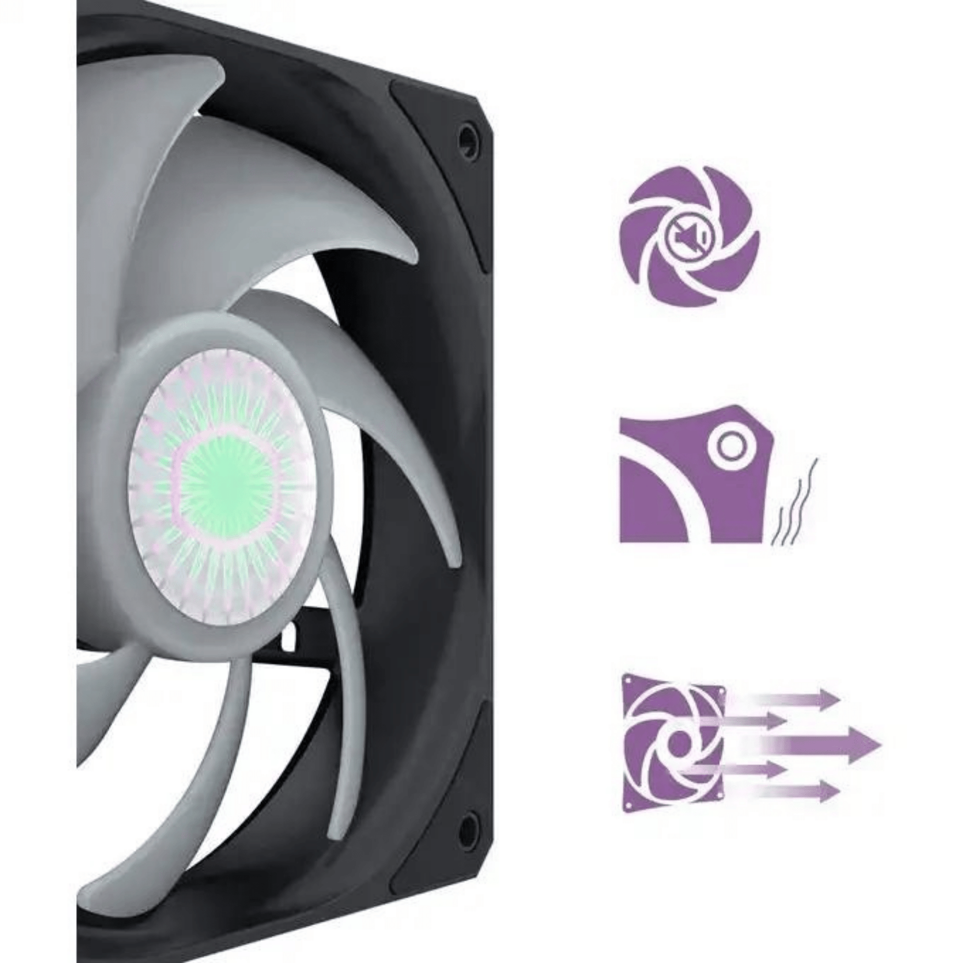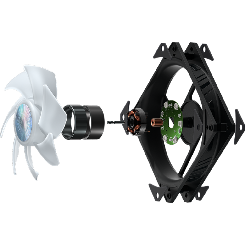 New SickleFlow 120 RGB fan boasts optimized air balance fan blades for impressive airflow. The durable fan frame and premium rifle bearing design gives you performance with quiet operation.