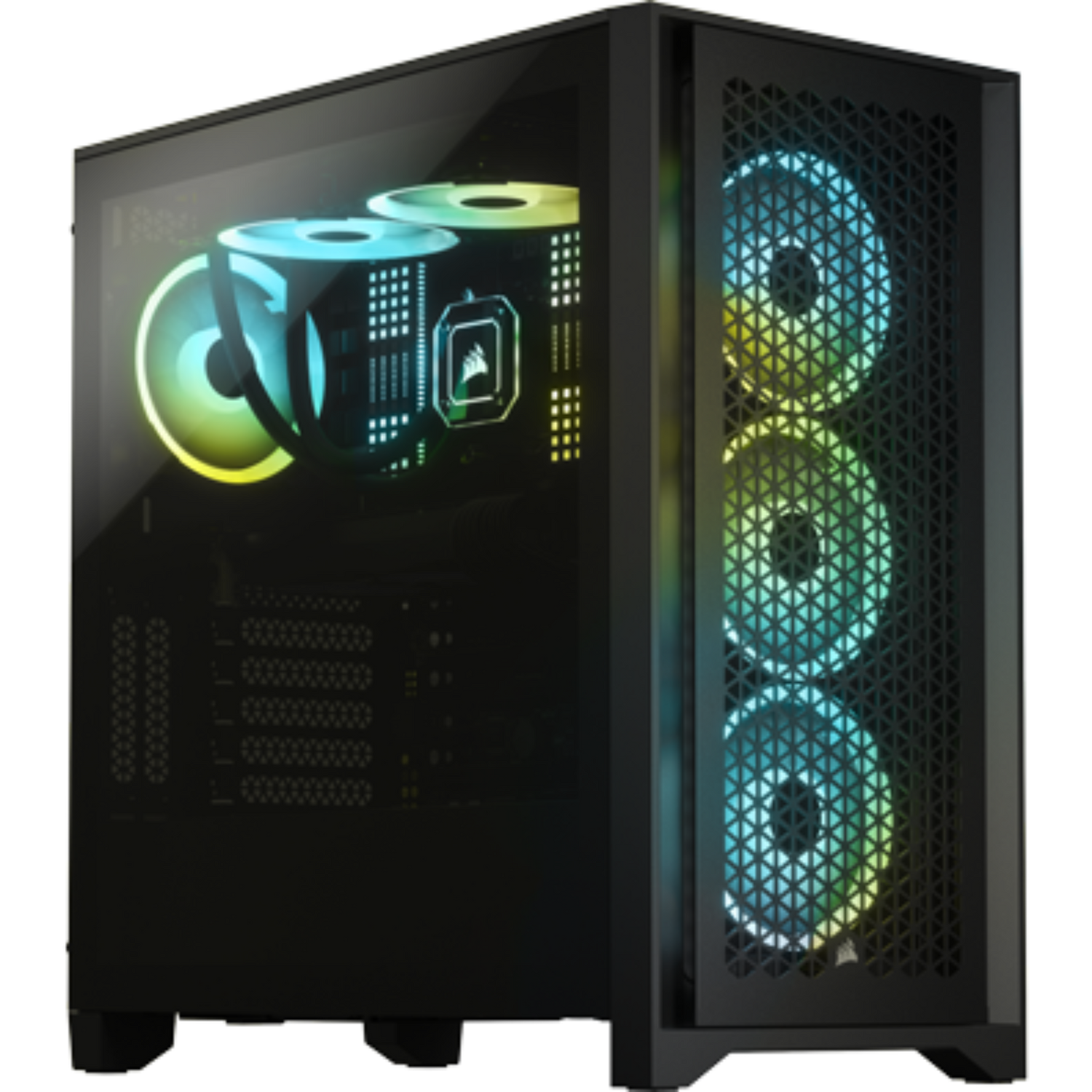 Showcase your components and RGB lighting through the stunning tempered glass side panel with the CORSAIR 4000D AIRFLOW chassis, as it also features front panel ventilation channels that are dedicated to delivering efficient airflow. This mid tower case is equipped with two CORSAIR 120mm fans, which deliver powerful directed airflow. The efficient fans feature AirGuide technology with anti-vortex vanes to concentrate airflow and enhance cooling.