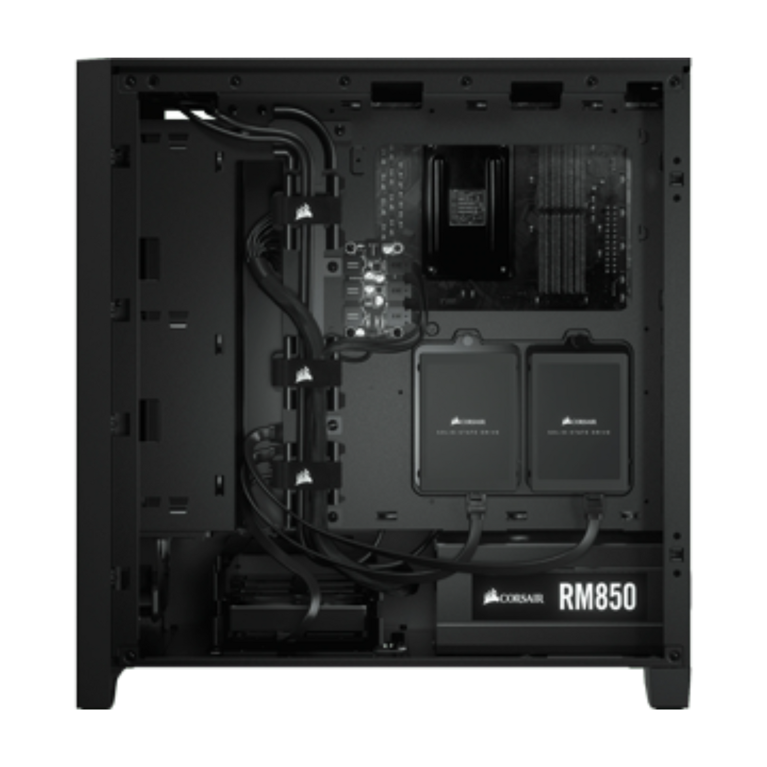 The CORSAIR Black 4000D AIRFLOW case can fit up to 2x 2.5" SSDs and 2x 3.5" HDDs, with the included relocatable SSD trays that can be moved to the front PSU cover.