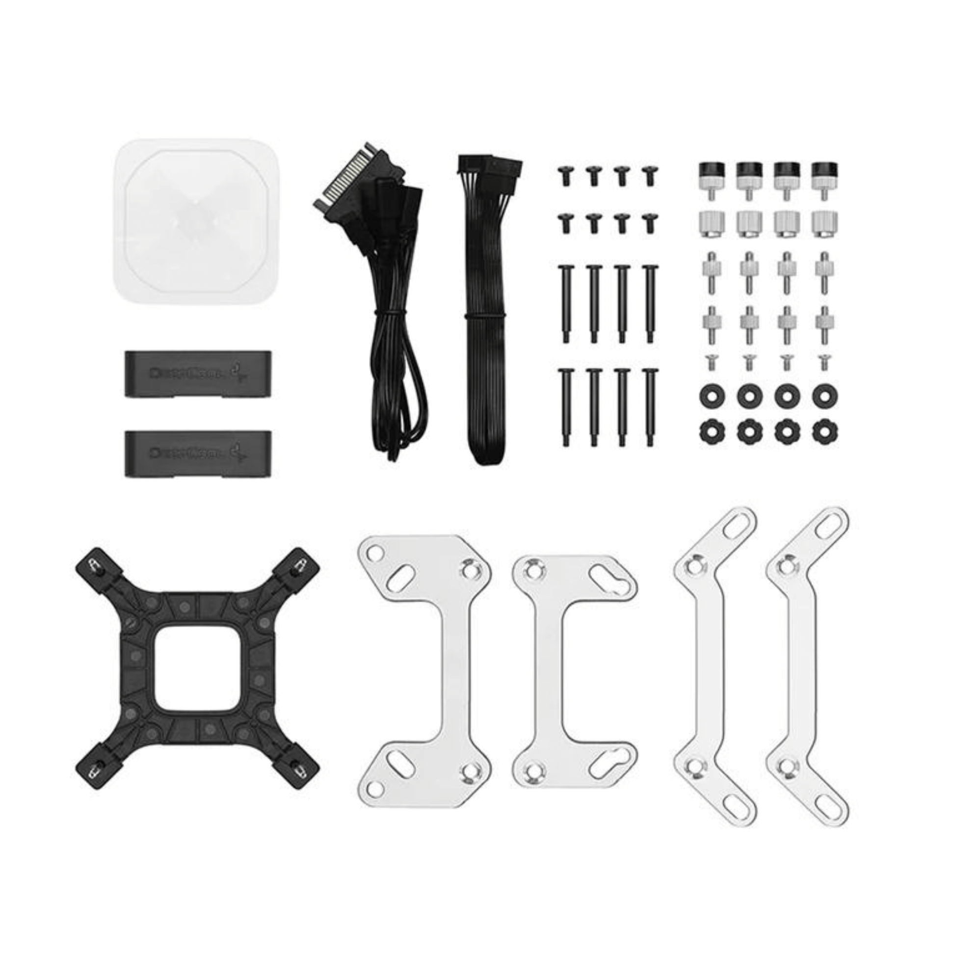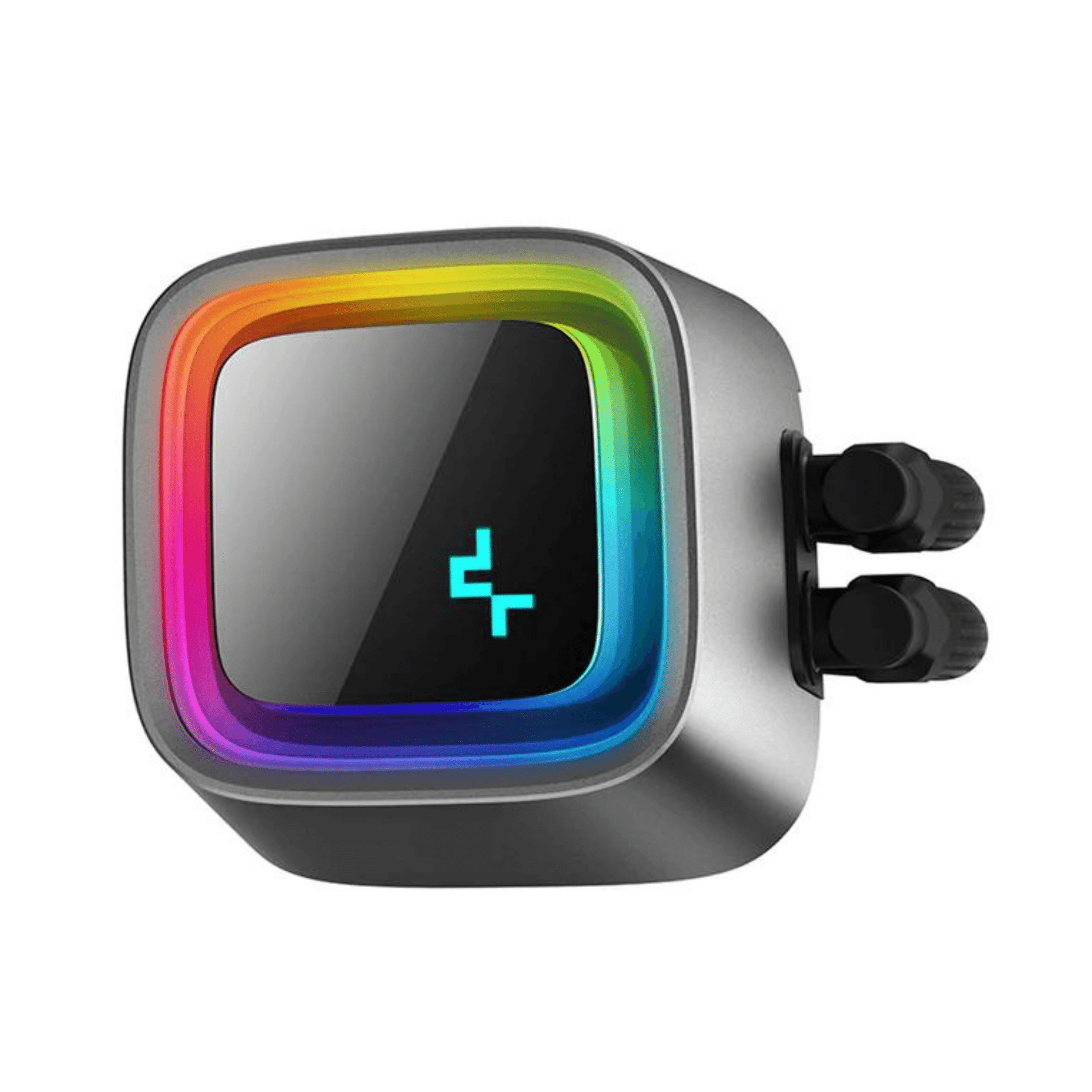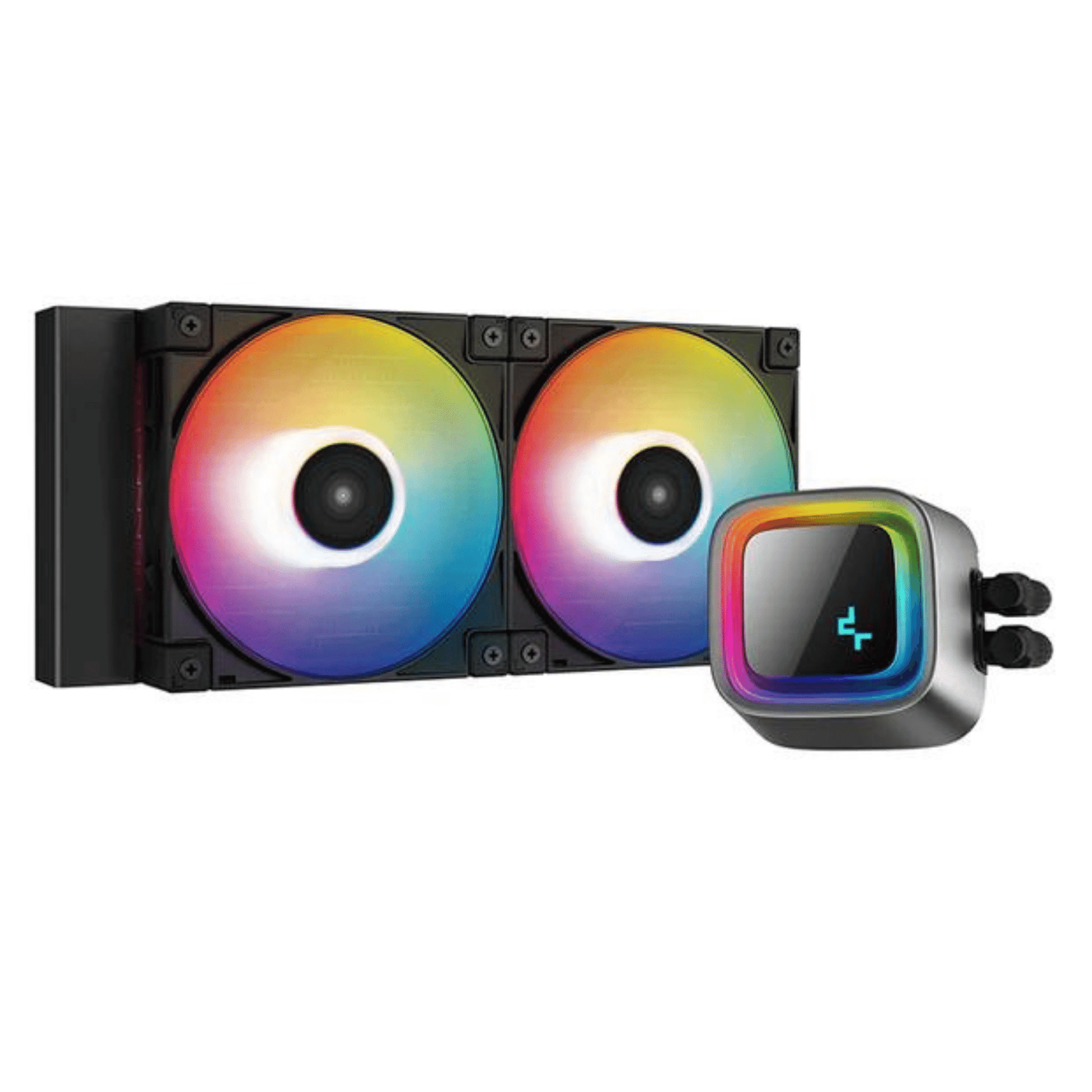 The DeepCool LS520 premium liquid CPU cooler maximizes cooling performance and low-noise efficiency with a 240mm radiator, two FC120 A-RGB PWM fans, and an infinity mirror cap design.