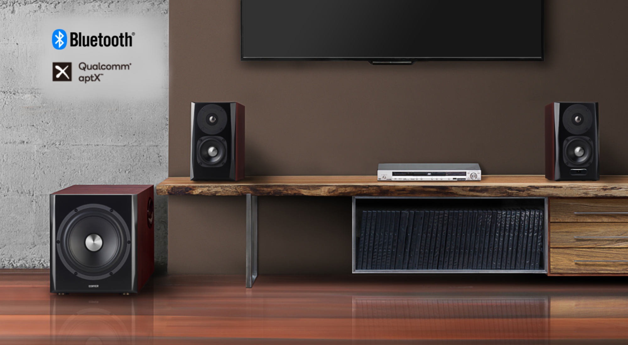 - Rich connectivity through Bluetooth, Optical, Coaxial, and PC/AUX