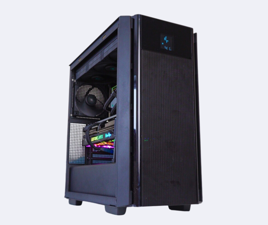 The premium components are housed in a spacious Deepcool mesh case with pre-installed RGB fans for optimal airflow and style.