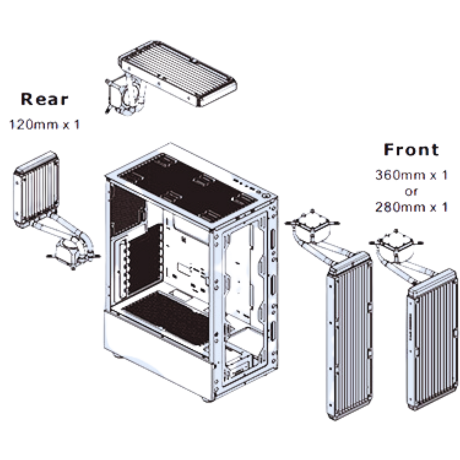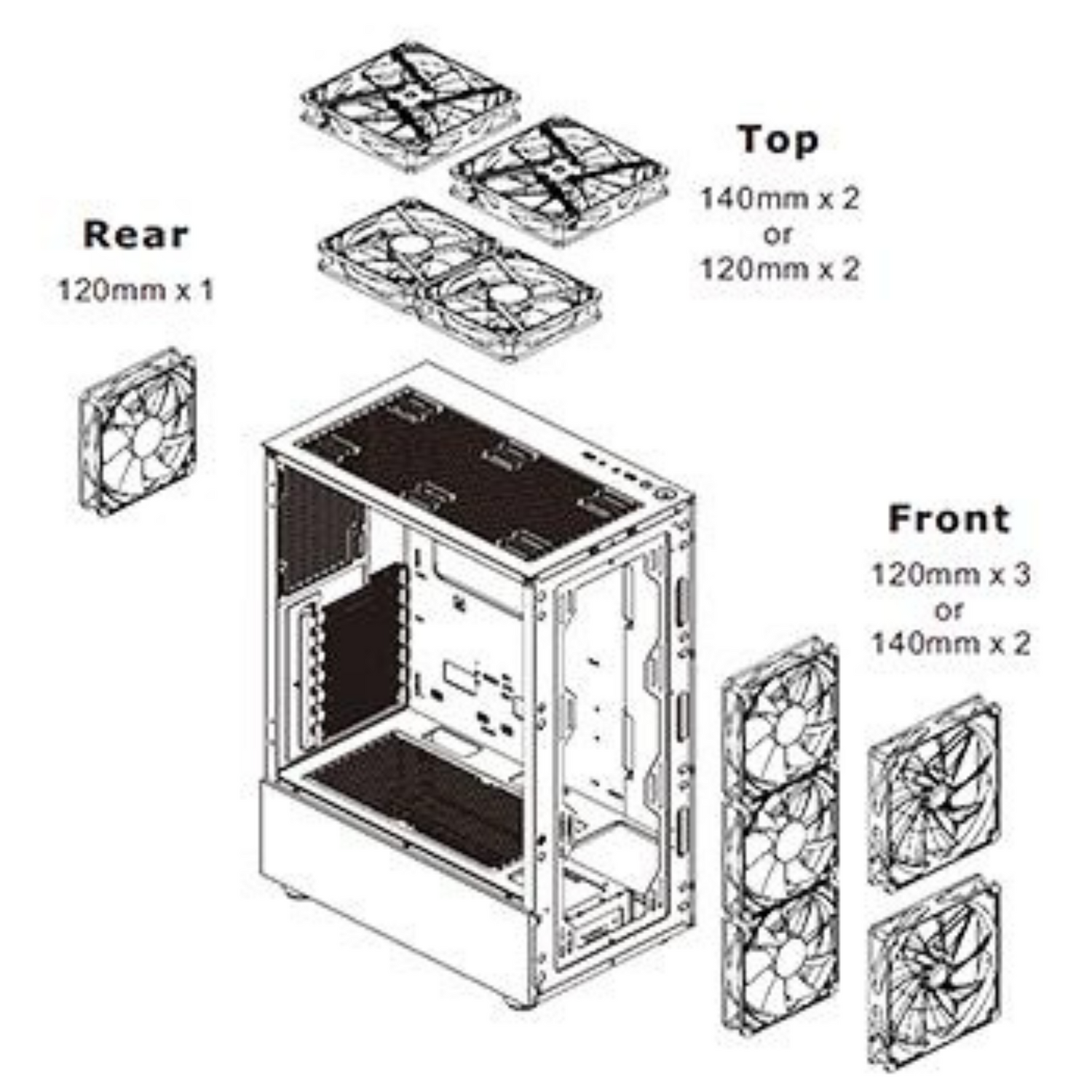 3 x 120mm, 2 x 120mm, 1 x 120mm