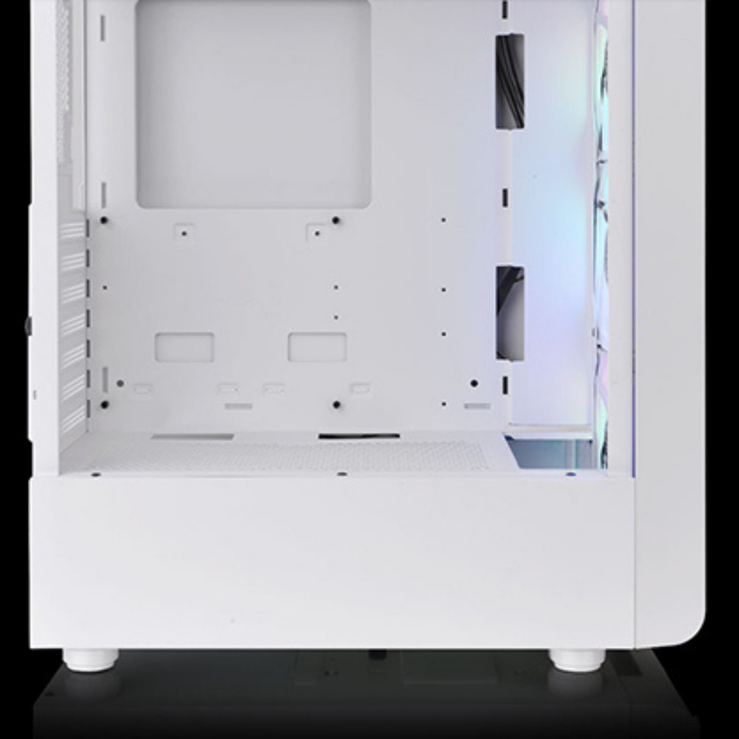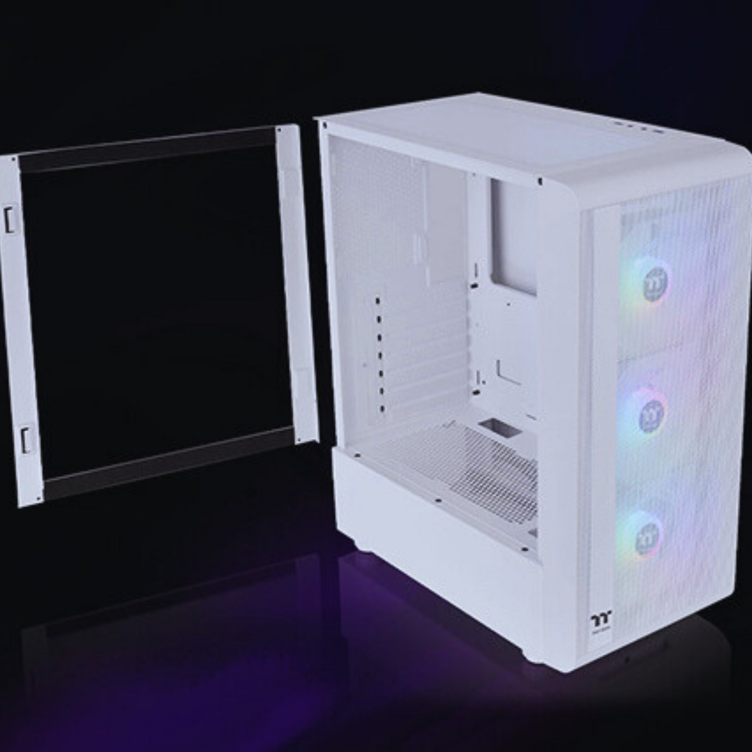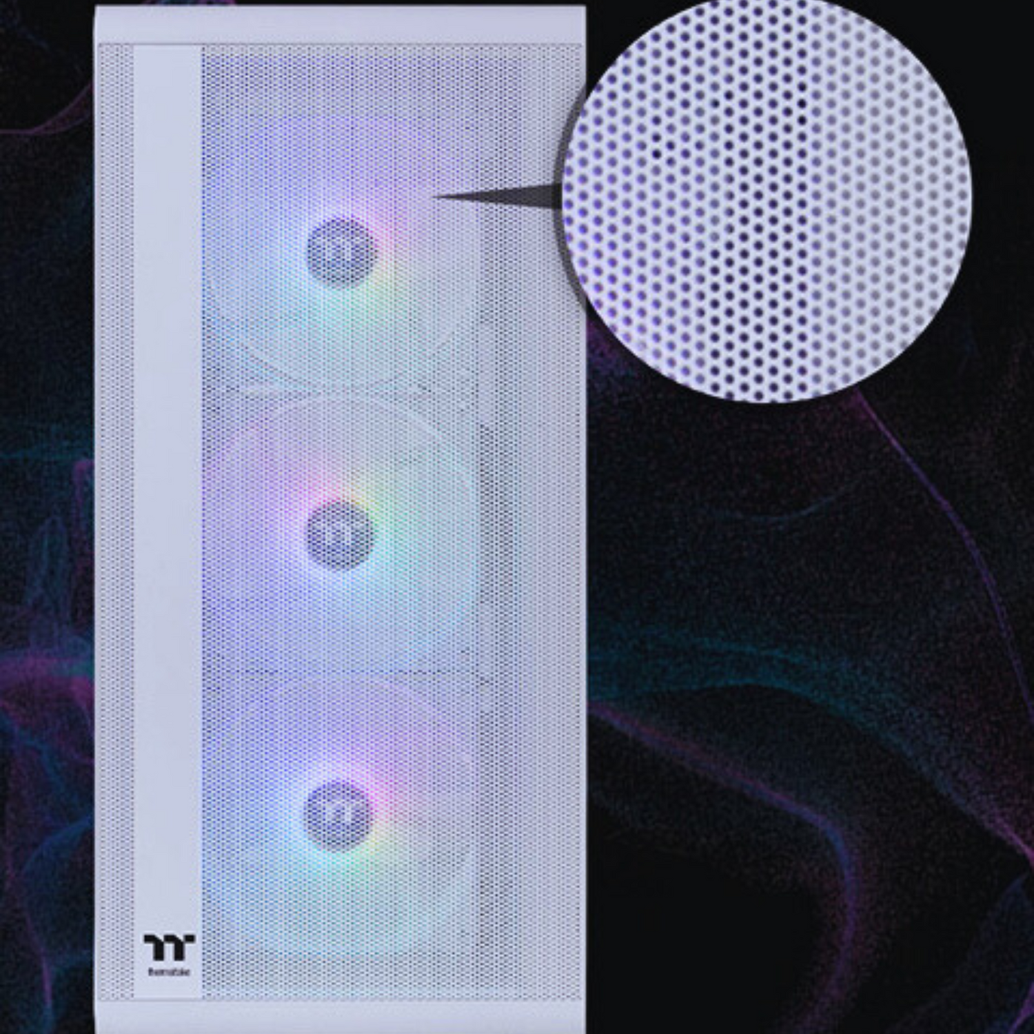 S200 TG ARGB Snow mid-tower chassis comes with a large airflow-optimized mesh panel featuring an elegantly designed strip and a TT logo at the front for massive airflow performance.